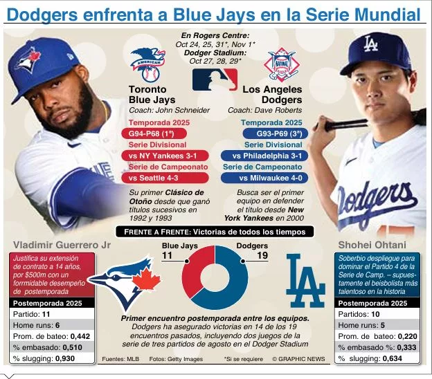 Por primera vez en 32 años, los Toronto Blue Jays finalmente regresan a la Serie Mundial. Tras derrotar a sus eternos rivales de división, los New York Yankees, en la Serie Divisional de la Liga Americana, y a sus némesis de los playoffs de 2022, los Seattle Mariners, en la Serie de Campeonato de la Liga Americana, su mayor desafío aún está por llegar, con los actuales campeones, Los Angeles Dodgers, que son ampliamente favoritos para repetir como campeones.