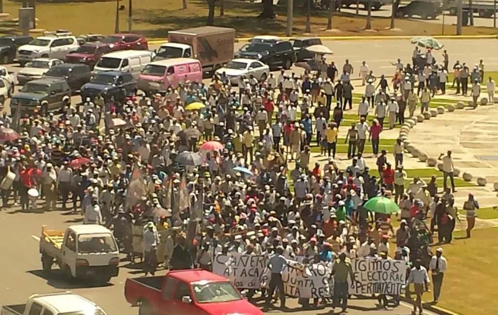 Los cañeros, la mayoría de ellos ancianos, se concentraron en la Plaza de la Bandera, en la avenida 27 de Febrero esquina Luperón, frente a la Junta Central Electoral (JCE).