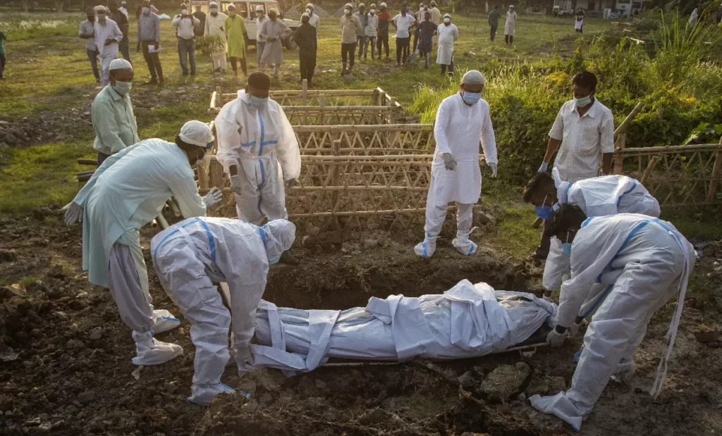 Los crematorios y lugares de enterramiento en India están sobrepasados por la devastadora nueva ola de contagios, que asola el populoso país con aterradora velocidad y ha llevado los suministros de oxígeno a niveles críticos, mientras los pacientes mueren en la fila de espera para ver a un médico.