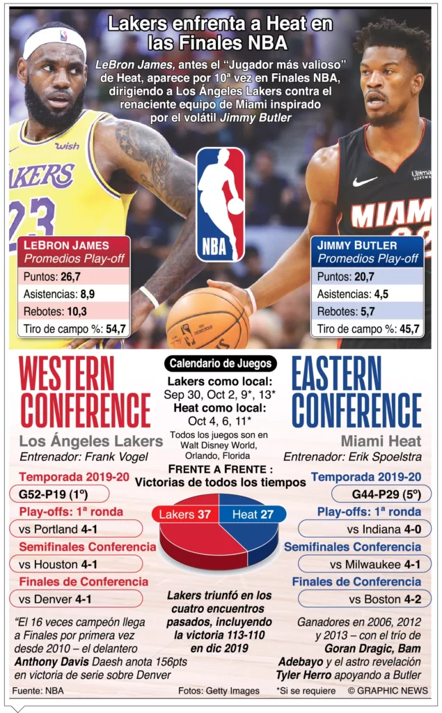 Jimmy Butler y Bam Adebayo van a luchar con James y Davis, además de un ataque mucho más diverso que el de los Lakers, al tener jugadores de la clase del base esloveno Goran Dragic, el escolta Duncan Robinson y el novato Tyler Herro.