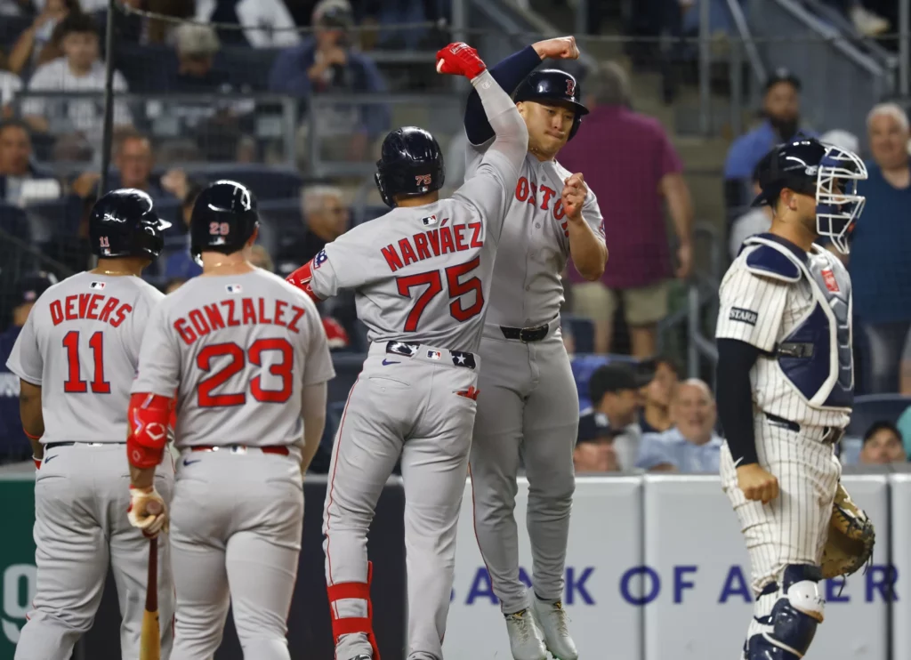 Rafael Devers también jonroneó y Boston igualó su mejor marca de la temporada con cinco jonrones para ganar dos de tres juegos en el Yankee Stadium en la primera serie de esta temporada entre los rivales de larga data.