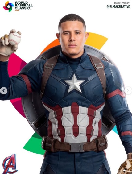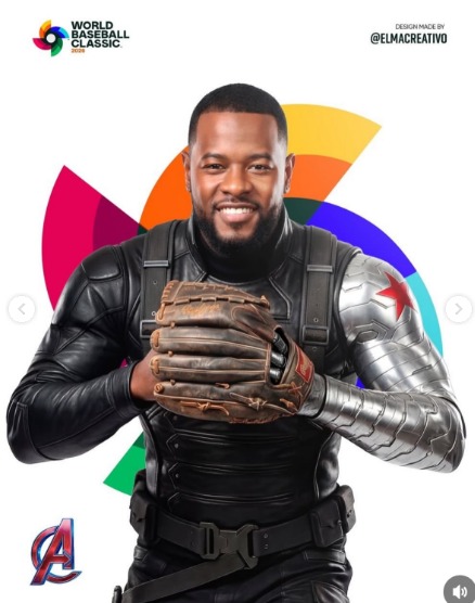 Otros muestran a los jugadores dominicanos convertidos en superhéroes de “Los Vengadores”, con el dirigente Albert Pujols caracterizado como Nick Fury, mientras que el estelar antesalista Manny Machado aparece como Capitán América.