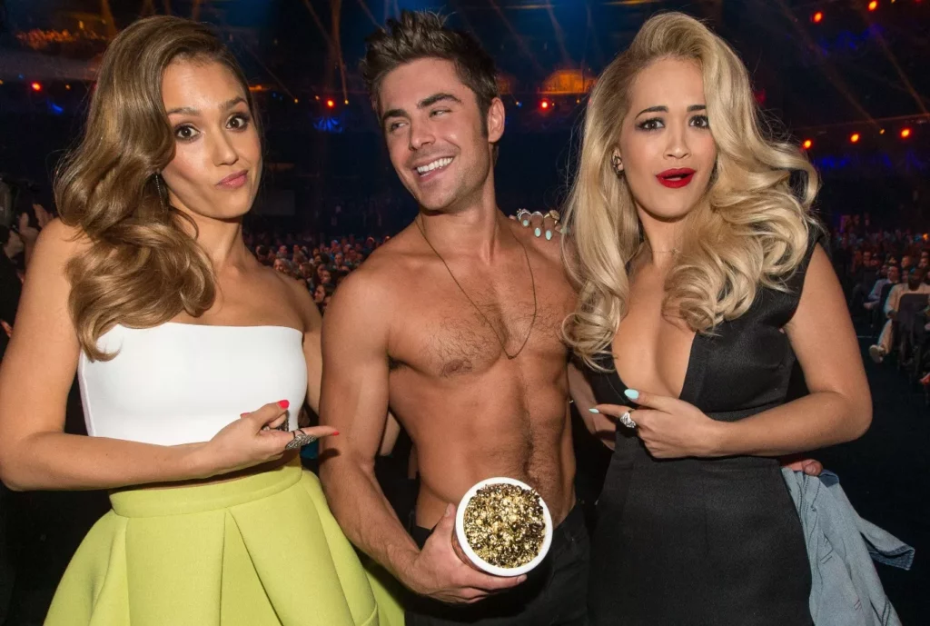 El momento más llamativo de la noche llegó cuando Zac Efron fue despojado de la camisa por Rita Ora tras recibir las “palomitas” en la categoría Mejor Actuación sin Camisa en la cinta “That Awkward Moment”.