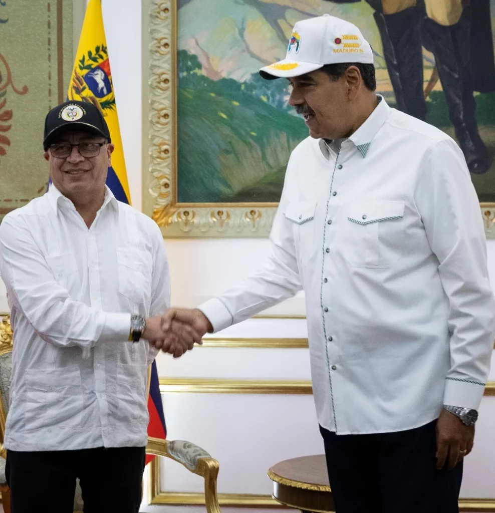El presidente de Venezuela, Nicolás Maduro, recibió ayer a su homólogo de Colombia, Gustavo Petro, en el palacio presidencial de Miraflores, en Caracas, en un momento de especial tensión entre ambos países.