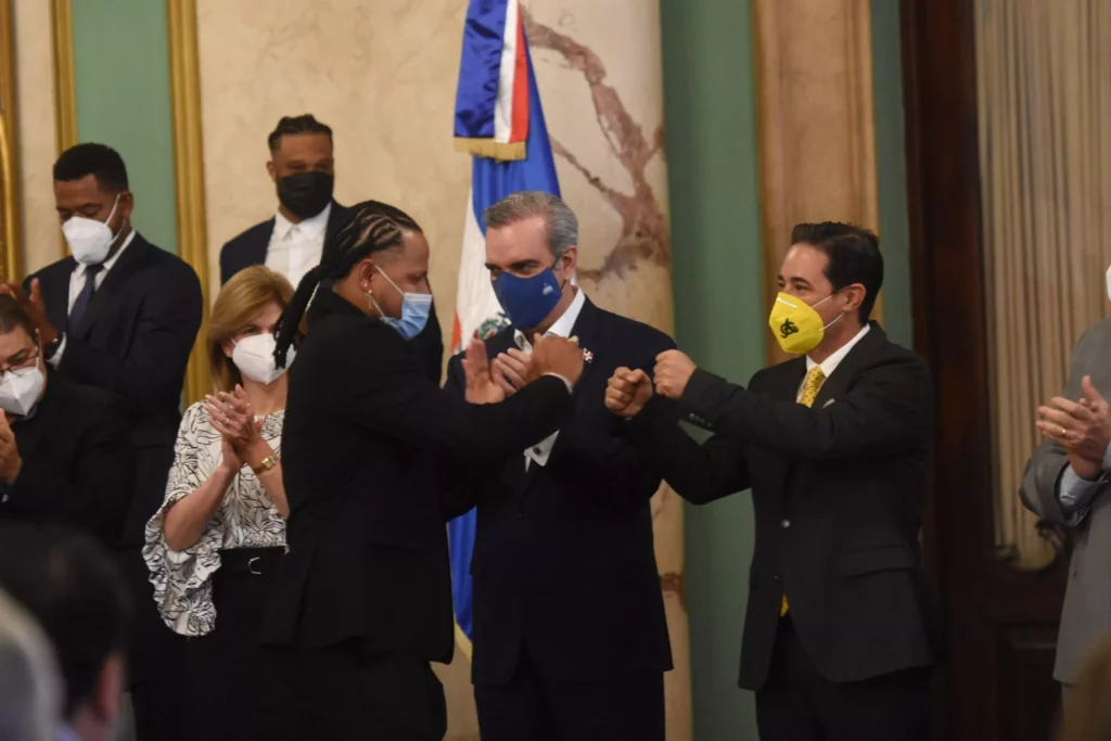Durante la actividad celebrada en el Salón Verde de la Casa de Gobierno, Abinader Corona saludó uno por uno a los jugadores, coaches y personal del equipo campeón, entre los que incluyeron Robinson Canó, Juan Lagares, César Valdez, Yuneski Maya, Francisco Peña, Johan Camargo y Carlos Martínez.