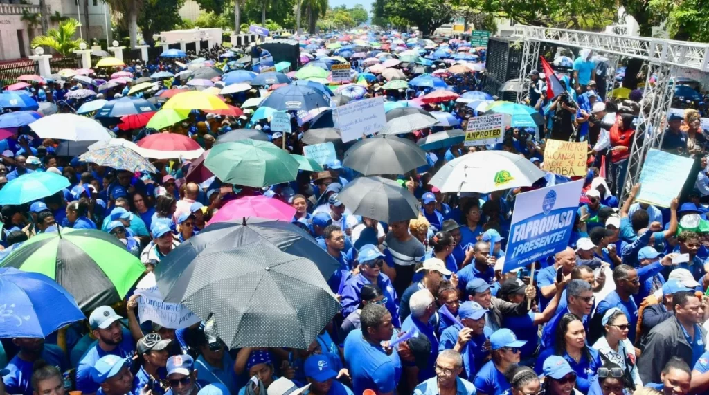Santo Domingo.-En un momento en que el año escolar está en la fase final, cientos de docentes de todo el país se concentraron desde tempranas horas de ayer frente al Ministerio de Educación (Minerd) en demanda de aumento salarial y evaluación de desempeño.