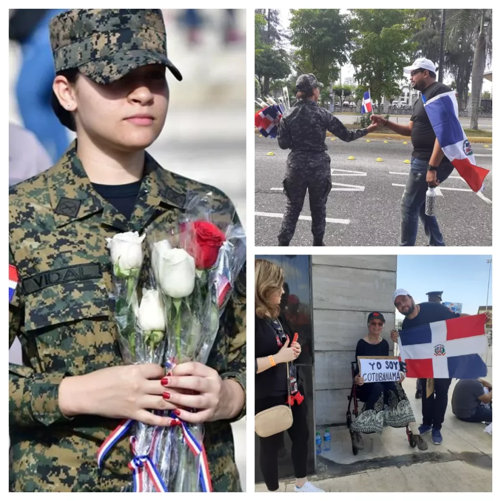 Desde primeras horas de hoy agentes de la Policía Nacional y miembros de los distintos organismos militares otorgaban rosas y banderas a los manifestantes, quien tomaban el obsequio con una sonrisa.