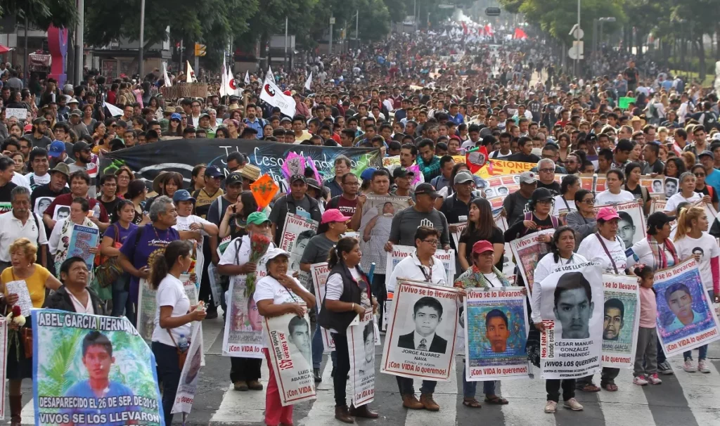 De acuerdo con la versión oficial, los 43 estudiantes de Ayotzinapa fueron detenidos por policías municipales de Iguala, Guerrero, y entregados a miembros del cartel Guerreros Unidos, quienes los asesinaron.