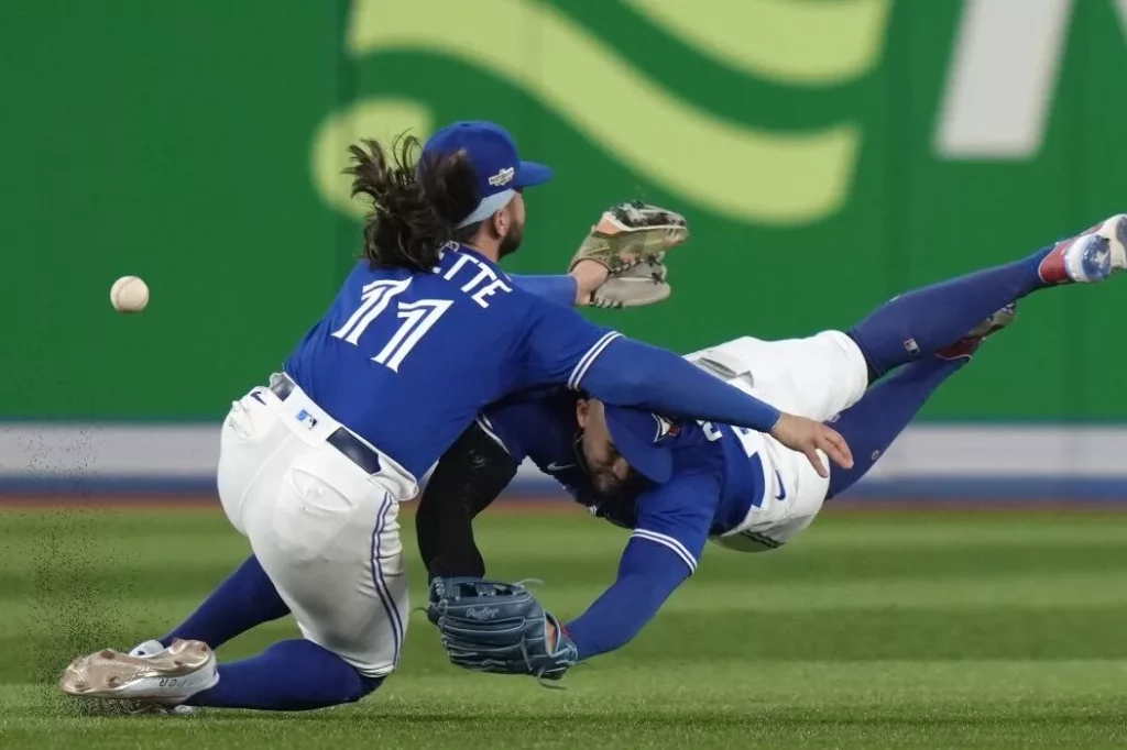 Parecía como si el brazo derecho de Bichette golpeara a Springer en la frente. Bichette se levantó bastante rápido y permaneció en el juego después de que un entrenador lo revisara. Un Springer mareado fue ayudado a ponerse de pie antes de ser sacado del campo.