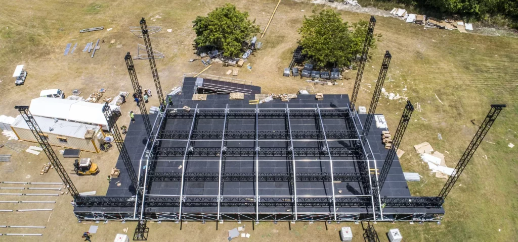 El montaje está terminado casi en su totalidad, y la misma fue traída desde Holanda permitiéndole al empresario artístico Saymon Díaz ser el primero en poseer una tarima de esa magnitud.