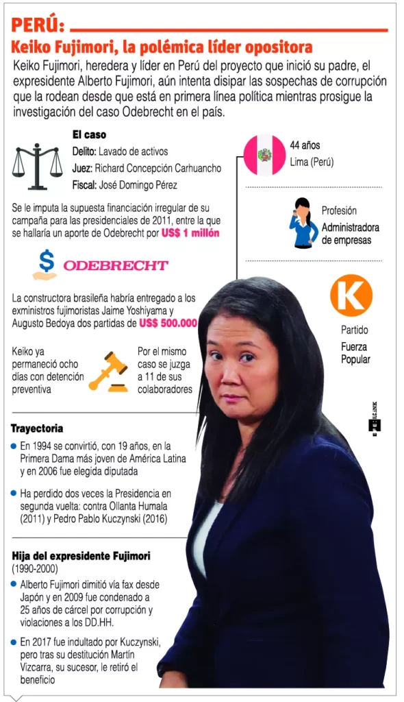 Keiko Fujimori ya cumplió más de un año de prisión preventiva por este caso, entre 2018 y 2019 en Perú.