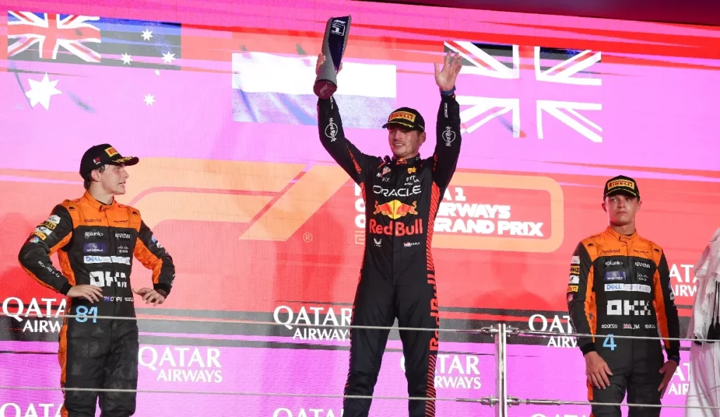 Verstappen, de 26 años recién cumplidos, logró su decimocuarta victoria de la temporada, la cuadragésima novena desde que corre en la F1, al ganar en Lusail -marcando, además, la vuelta rápida- por delante de los dos McLaren, el del australiano Oscar Piastri, que acabó segundo este domingo tras anotarse el sprint del sábado; y el del inglés Lando Norris; que también subió al podio.