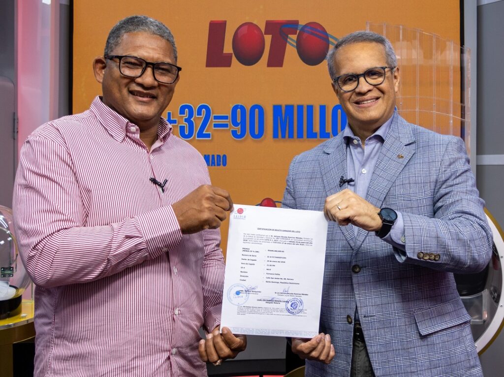 Santo Domingo.- La Lotería Electrónica Internacional Dominicana, S.A. (LEIDSA) informó que el señor Adriano Nicolás Ramírez Méndez recibió el certificado que lo acredita como el ganador de los RD$90 millones correspondientes al sorteo Loto del pasado miércoles 24 de enero.