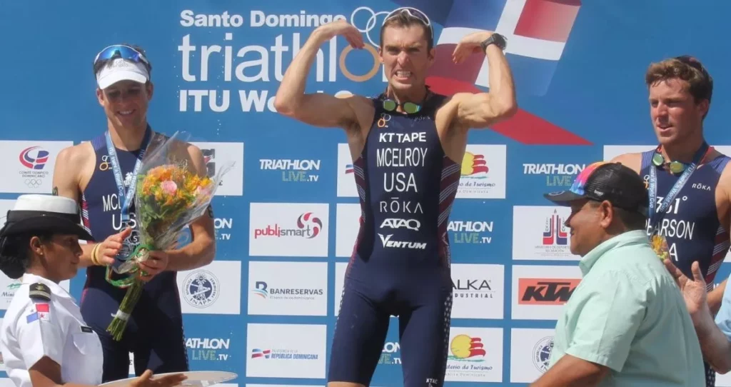 McElroy, ganador del oro por los Estados Unidos, se impuso en masculino categoría élite con un tiempo de 1:39:03, en el recorrido de las tres especialidades, nado (1,500 metros), ciclismo (40 kilómetros) y carrera-atletismo (10 km).