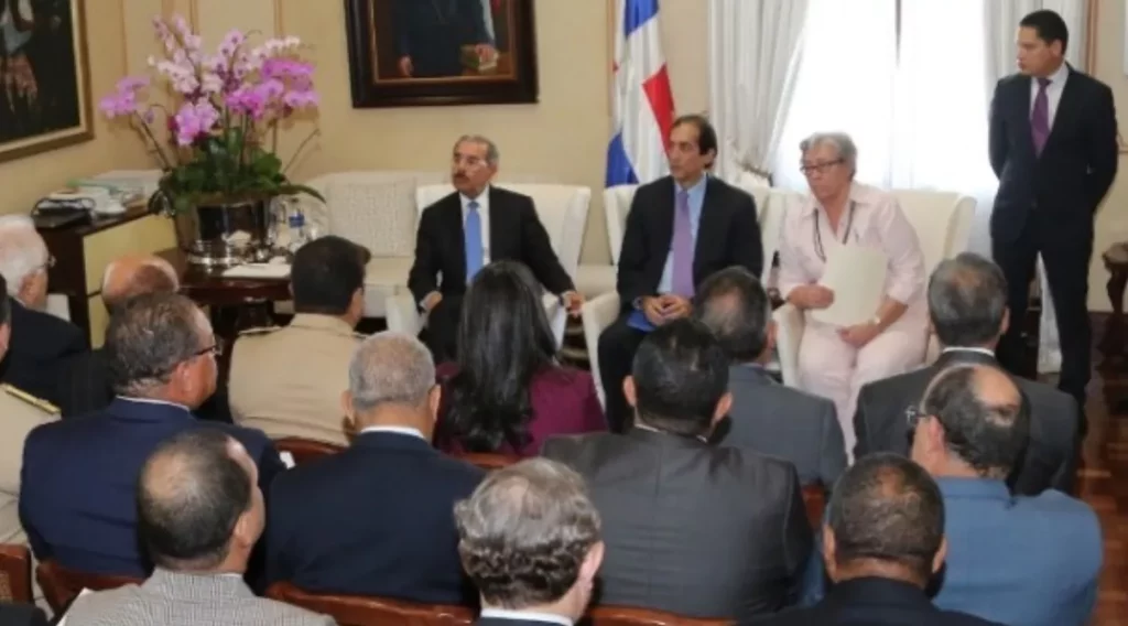El presidente Medina se reunió por más de una hora con la ministra de Salud Pública, Altagracia Guzmán Marcelino; el director del Servicio Nacional de Salud (SNS), Nelson Rodríguez Monegro, y César Mella para recibir un informe sobre los avances del diálogo con el Colegio Médico Dominicano (CMD).