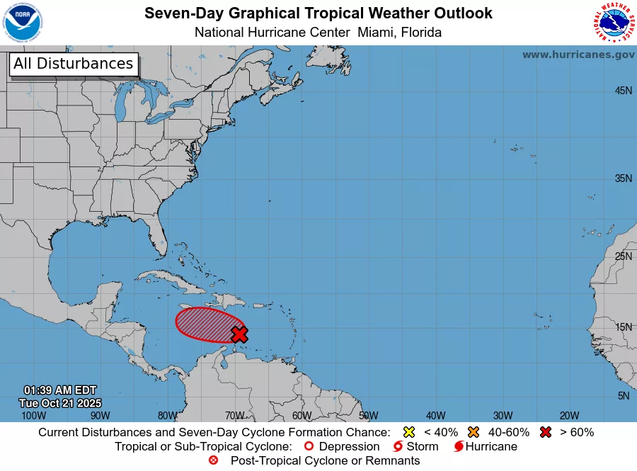 De continuar su organización, el sistema podría convertirse en el ciclón tropical número 11 de la temporada, bajo el nombre “Melissa”.