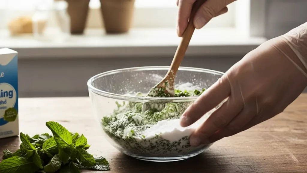 La receta es sencilla: se licúa una taza de hojas de menta con dos cucharadas de bicarbonato y un poco de agua, hasta lograr una textura uniforme. Puede aplicarse directamente en superficies o diluirse en agua para usos más suaves. También puede emplearse como desodorante ambiental al colocar pequeñas cantidades en frascos abiertos.
