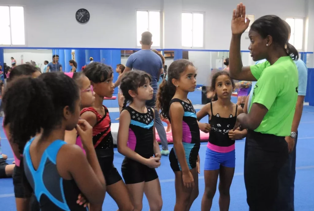 Las niñas de la Escuela de Gimnasia del club Naco mostraron alegría al recibir explicaciones de la medallista Panamericana de esa disciplina Yamilet Peña, en su comparecencia en la entidad deportiva capitalina.