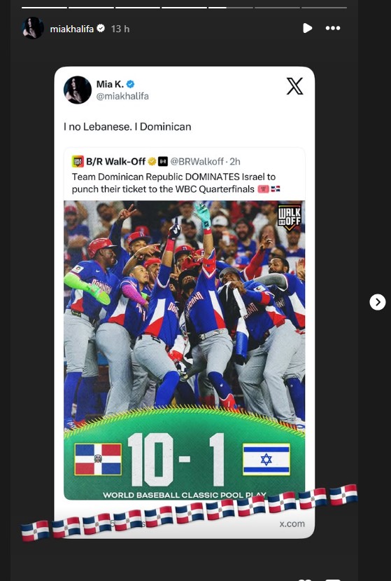 “I no Lebanese, I Dominican”, escribió la modelo tras el triunfo dominicano en el Clásico Mundial de Béisbol 2026