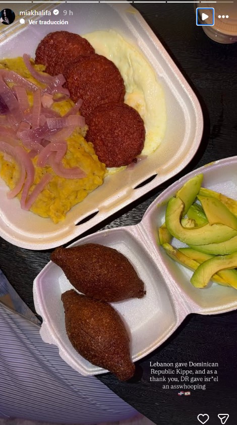 Posteriormente compartió una fotografía de su particular celebración gastronómica: un plato de Mangú con los tres golpes (salami, huevo y cebolla), acompañado de aguacate y Kibbeh, una picadera icónica de la cultura libanesa.