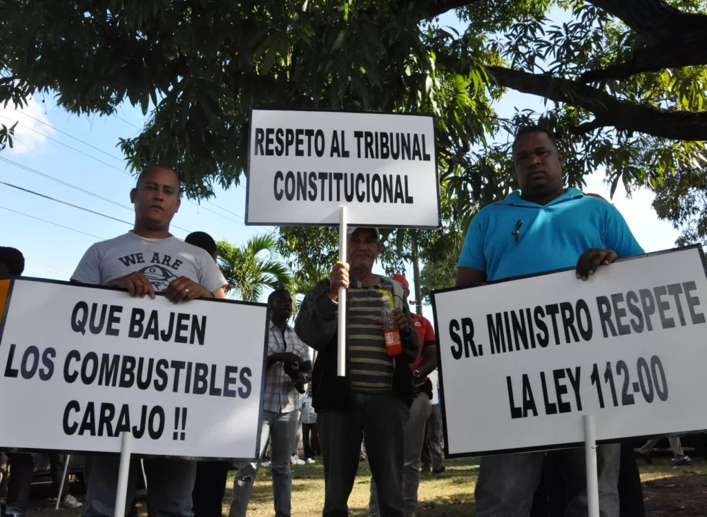 SANTO DOMINGO.- Miembros de la Asociación Nacional de Detallistas de Combustible (Anadegas) realizaron hoy una marcha desde Industria y Comercio hasta el Palacio Nacional para demandar que el carburante sudsidiado al transporte público sea distribuido a través de un sistema de tarjeta o bono-disel.
