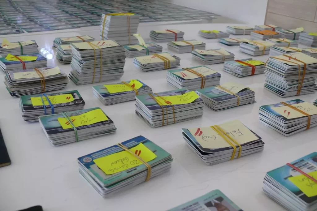 De acuerdo al informe de la DGM, además de los carnés del PNRE decomisados, figuran 19 pasaportes haitianos y cuatro dominicanos, una cédula haitiana, un permiso de trabajo, y seis permisos vencidos de residencia.