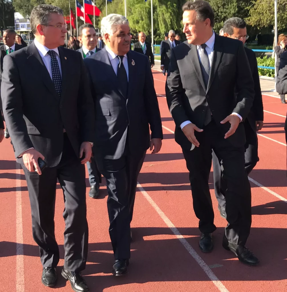 Vargas fue recibido con honores por el director de la Policía de Investigaciones (PDI) de Chile, Héctor Espinosa Valenzuela, en la sede de esa entidad, junto a los Jefes de Estado y Cancilleres de los países miembros del Sistema de la Integración Centroamericana (SICA), en el marco del Foro de Diálogo Político y Cooperación entre el SICA y Chile.