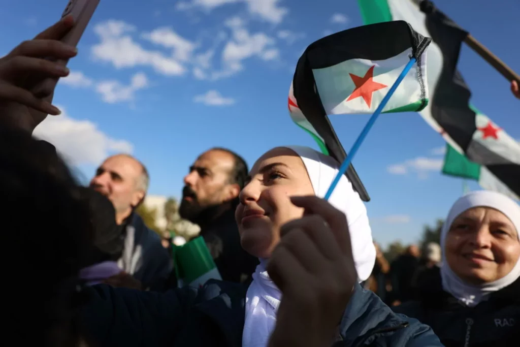 Los participantes gritaron consignas como “Uno, uno, uno, el pueblo sirio unido” y “La victoria para la voluntad de los pueblos”, y portaron réplicas de la nueva bandera siria, que hasta el pasado domingo representaban a la oposición del país. En la capital, varios millares de fieles tomaron parte en el rezo musulmán de los viernes en la histórica mezquita Omeya, una de las más antiguas de Oriente Medio y donde pronunció un sermón el nuevo primer ministro interino sirio, Mohamed al Bashir.