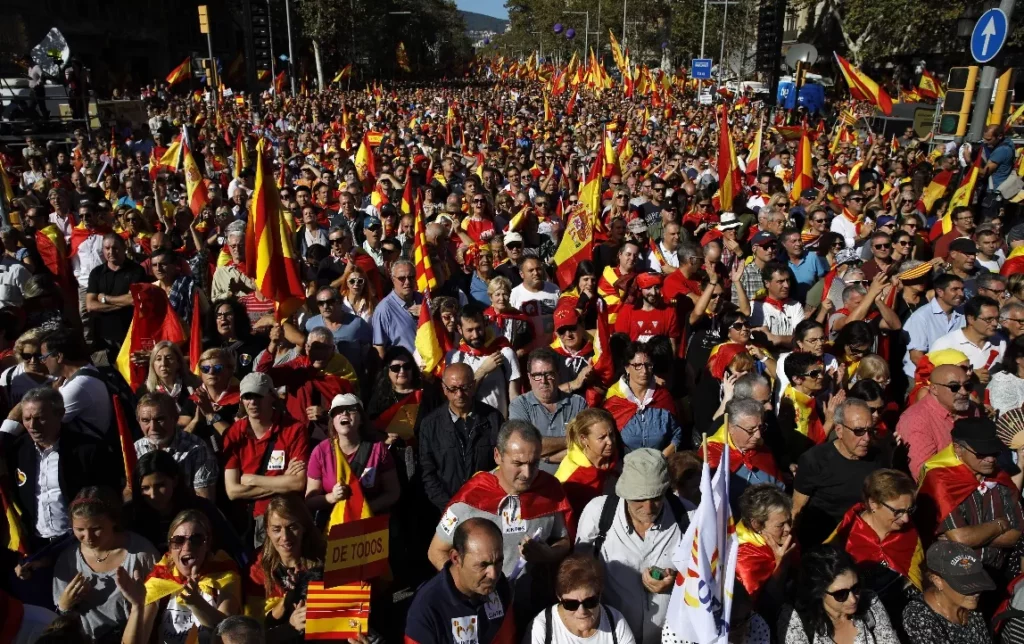 Todos somos Cataluña” es el lema de esa marcha organizada por una entidad denominada Sociedad Civil Catalana (SCC) que cifró en 1,1 millones de personas la presencia, mientras que la Guardia Urbana de Barcelona habló de 300.000 manifestantes.