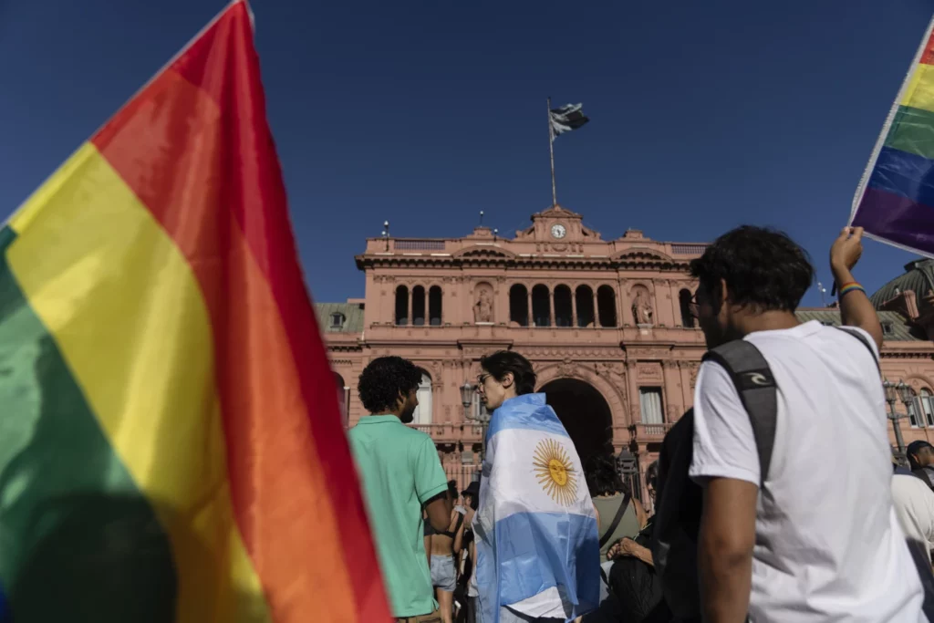Ataviados con banderas multicolores y con la consigna de que “los derechos no se negocian” en pancartas, camisetas y cánticos, los manifestantes se congregaron en la céntrica Plaza de Mayo, escenario habitual de las protestas.