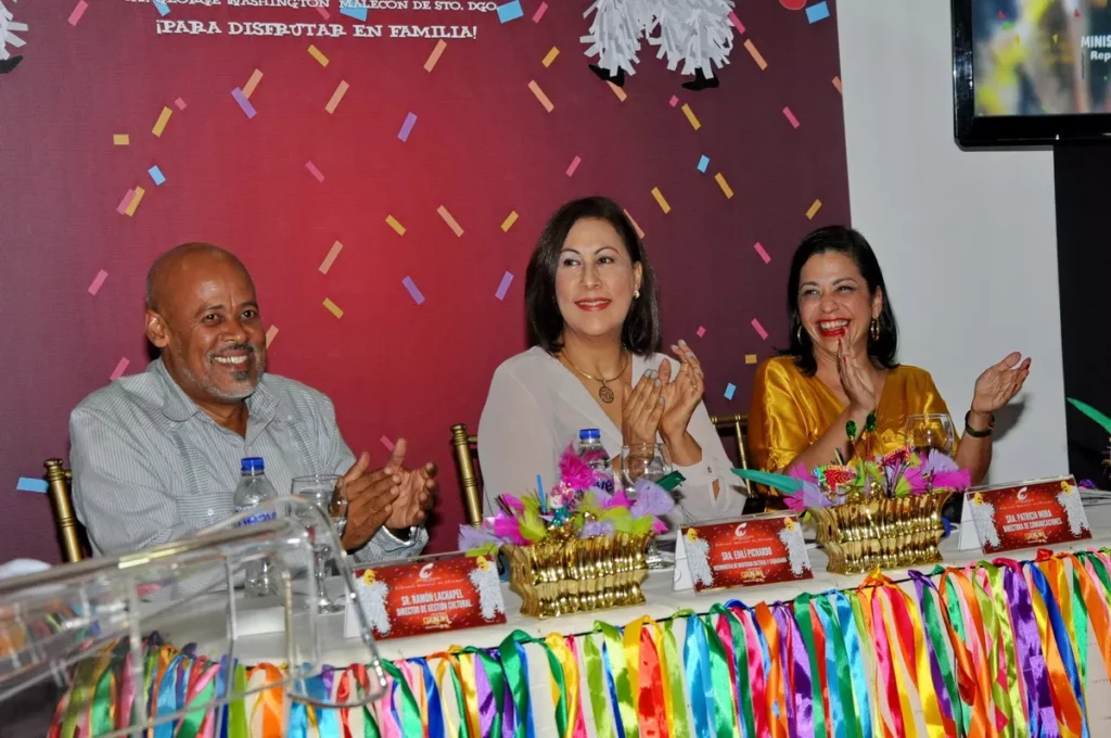 Los detalles fueron dados a conocer en rueda de prensa encabezada por Edilí Pichardo, viceministra de Identidad Cultural y Ciudadanía; Ramón Lachapelle, director Nacional de Carnaval; Patricia Mora, directora general de Comunicaciones; entre otros funcionarios del MINC, quienes informaron el desfile tendrá un tiempo de duración de tres horas.