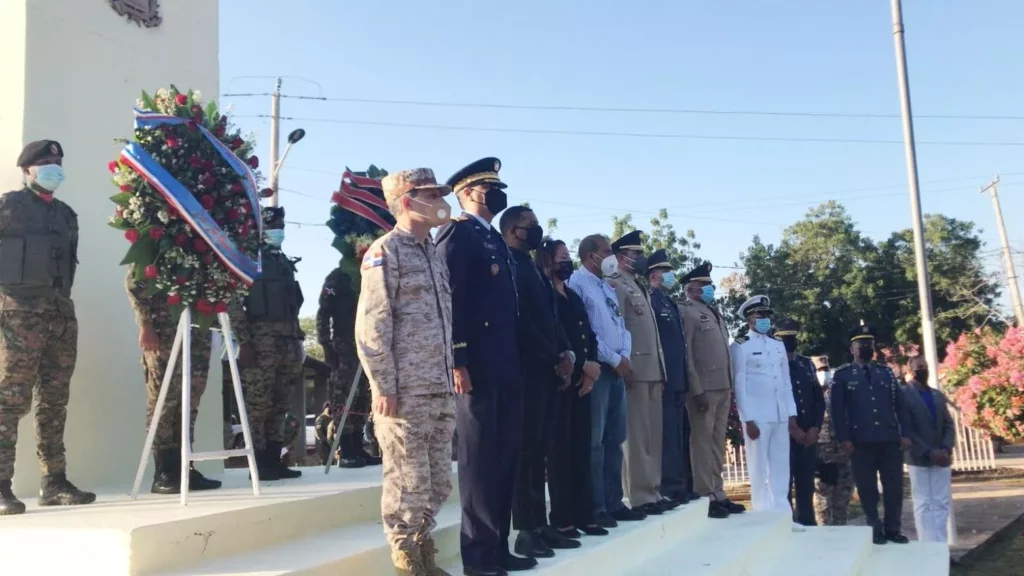 Respetando los protocolos de distanciamiento social, fueron realizados los honores militares de estilo con salva de 15 cañonazos y se depositó una ofrenda floral en el Monumento en honor a los héroes de la gesta “Batalla de Sabana Larga”, en la provincia Dajabón.