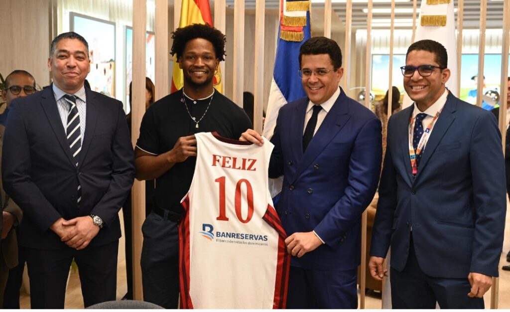 Feliz, nativo del sector capitalino de Guachupita, egresado de la Universidad de Illinois, en los Estados Unidos, pertenece a la plantilla del equipo de Real Madrid, de la Liga ACB de España de Primera División, le entregó al ministro Collado la camiseta de su uso, la No.10.