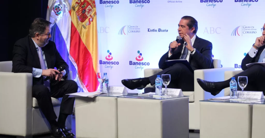 El Ministro de Turismo estuvo acompañado en el referido panel del administrador del Banco de Reservas, Simón Lizardo; Frank Elías Rainieri, vicepresidente del Grupo Punta Cana y Víctor Moro, presidente de Vima World, con la moderación de Bieito Rubido, director del diario español ABC.