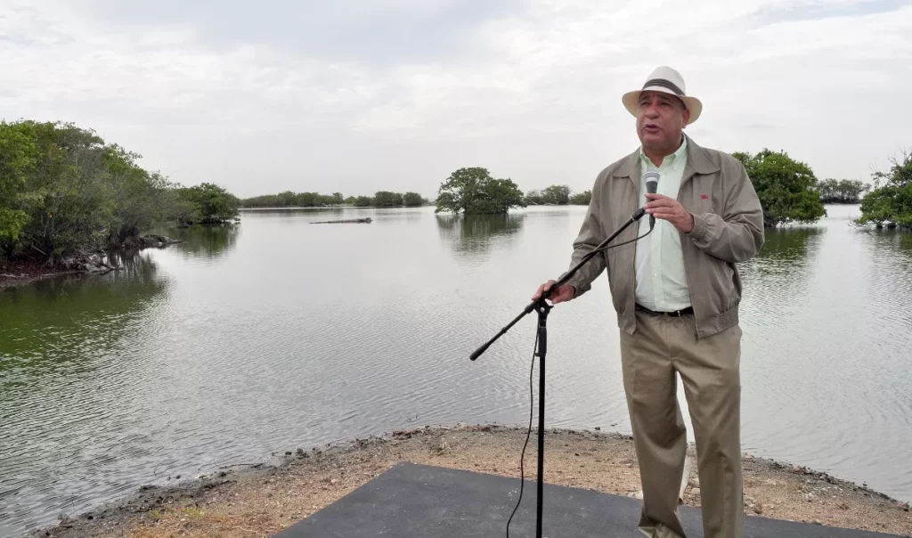 Aquí, en medio de la quietud de las aguas y el cantar de los pájaros, Bautista Rojas Gómez, titular de esta dependencia, exhortó al pueblo dominicano a preservar los espacios medioambientales y desarrollar actividades que reduzcan las emisiones de dióxido de carbono.