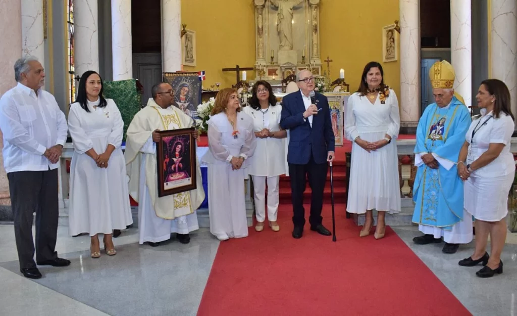 La misa en conmemoración del segundo aniversario jubilar de la coronación de la Virgen y la Asunción fue presidida por el reverendo monseñor José Dolores Grullón, junto al párroco de la capilla, el Rev.