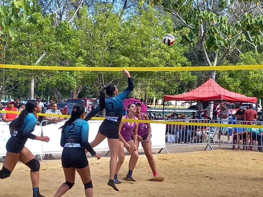 La Vega.-Los equipos representativos de Moca, San Francisco de Macoris, Distrito Nacional, Santiago, Villa Tapia, Hermanas Mirabal y los anfitriones de La Vega ganaron sus respectivos compromisos en la apertura del XXIII Torneo de Voliarena Semana Santa 2021, dedicado al ministro de Deportes, Francisco Camacho, en el Centro Olímpico de esta ciudad.