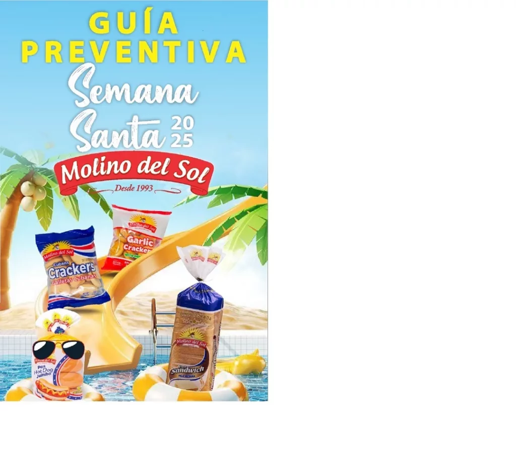 productos de panificación. Molino del Sol, es una empresa que se ha desarrollado en República Dominicana ofreciendo una gran gama de productos de consumo de alta calidad como lo son sus deliciosas galletas, (grisinis palitos, línea integrales, pan blanco , artesano de masa madre con tanto nivel en su calidad que son además exportados en estados unidos específicamente a estados unidos en la diáspora de NY así como en la Florida.