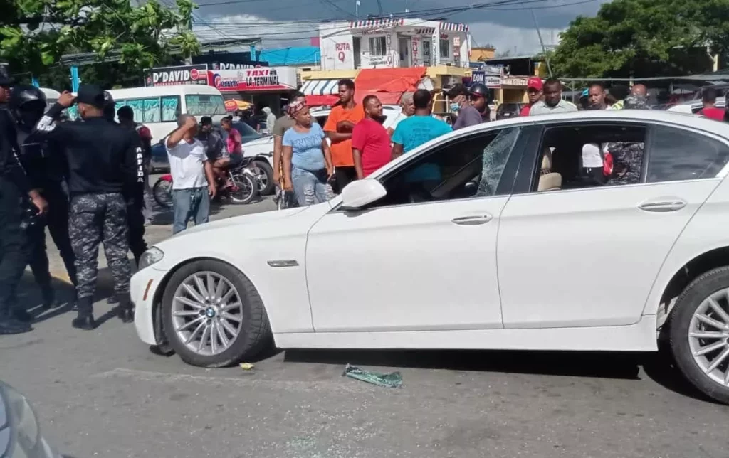 La mujer fue asesinada por dos sicarios que se desplazaban en una motocicleta mientras la víctima se encontraba en su vehículo, un carro BMW blanco, en la avenida 27 de Febrero esquina Estrella Sadhalá, Santiago.