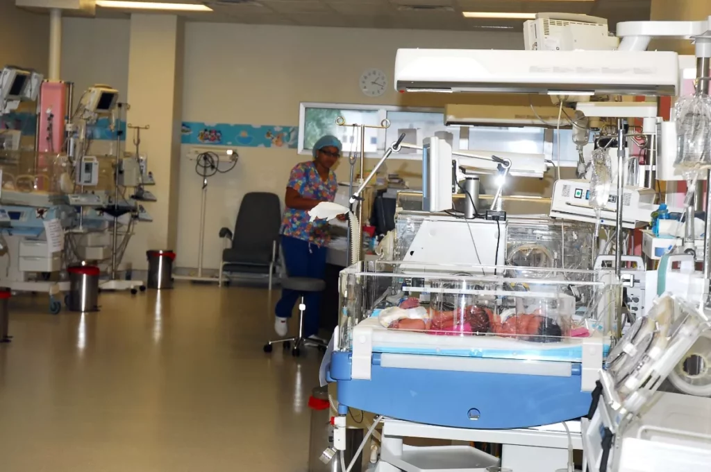 La unidad de cuidados intensivos tiene capacidad de seis camas con sus monitores avanzados de signos vitales y una sección de cuidados intensivos neonatales, con capacidad para ocho puestos, equipada de seis incubadoras de completas prestaciones y dos cunas térmicas para pacientes semi-críticos.