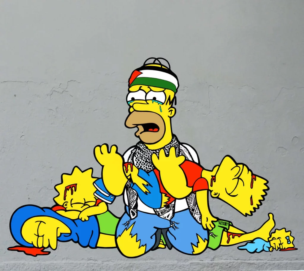 Roma.- Un mural que representa a la famosa familia de dibujos animados Simpson como palestinos bajo los bombardeos de Gaza, del artista callejero italiano aleXsandro Palombo, ha sido incluido en un “migrantour” en Milán, un itinerario de turismo urbano para a dar a conocer el patrimonio cultural de los barrios multiétnicos de la ciudad del norte de Italia.