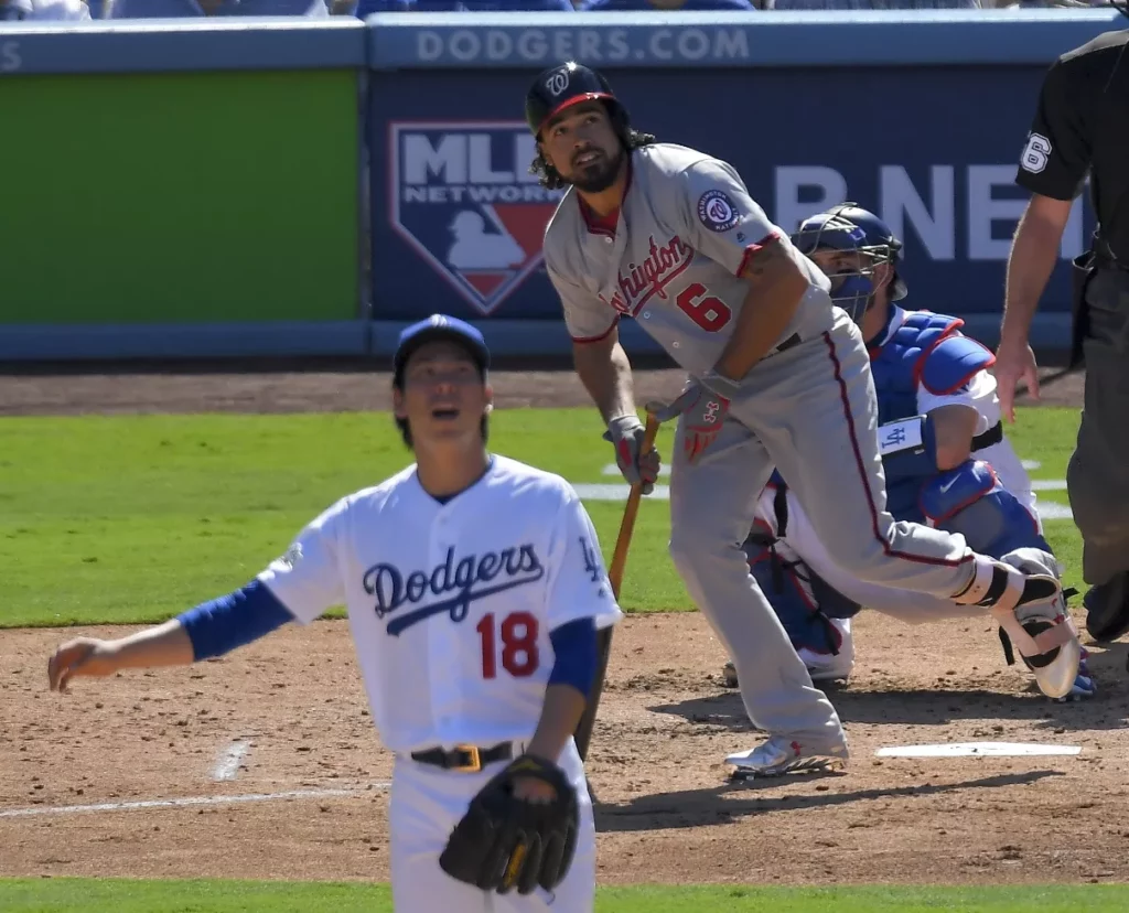 Cuatro relevistas se combinaron al lanzar cuatro innings y dos tercios en blanco, poniendo a los Nacionales en posición de sentenciar la serie hoy en el Dodger Stadium. Apenas 23 horas después que los Nacionales empataron la serie al llevarse el segundo juego, Rendón disparó un jonrón de dos carreras dentro del ataque de cuatro anotaciones en el tercero que puso fin a la actuación del abridor Kenta Maeda. Werth añadió un jonrón solitario frente al cerrador Kenley Jansen en un racimo de cuatro anotaciones en el noveno.