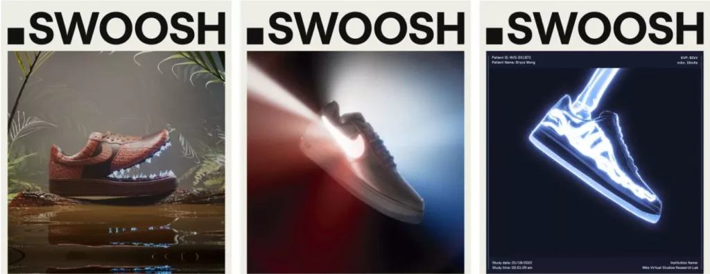 El movimiento comenzó con una nueva comunidad digital . Ahora, con más de 330 000 miembros, .SWOOSH, la nueva plataforma de Nike para creaciones virtuales, lanza su primera colección de creación digital: Our Force 1 (OF1). Co-curada por la comunidad .SWOOSH y creada para la generación digital, OF1 es un tributo a los primeros 50 años de Nike y un homenaje a la creatividad y versatilidad del Air Force 1. La colección elimina las barreras del producto físico, construye comunidad y aprovecha la tecnología pionera que impulsa el futuro del deporte.