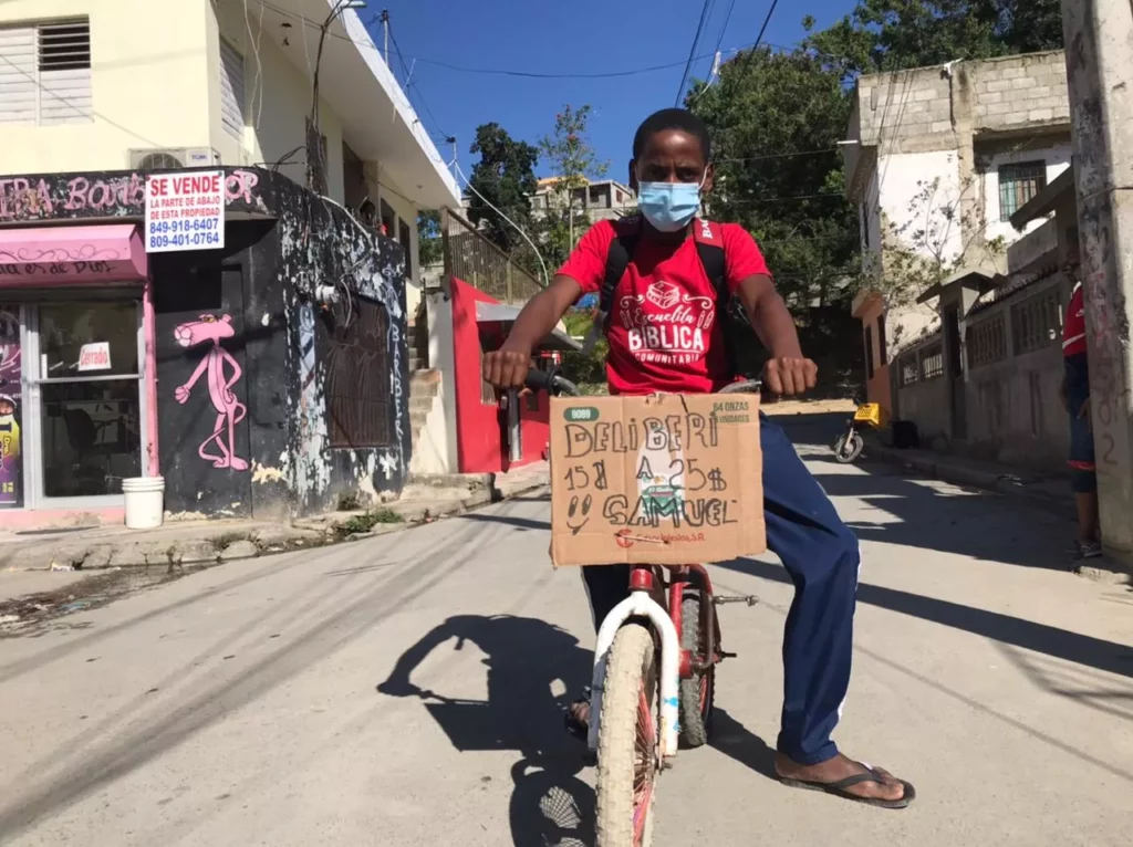 “Un día vi un hombre en un motor con un bulto grande y me surgió la idea de hacer lo mismo pero, con una bicicleta que un vecino me regaló, porque quiero a ayudar a mi mamá ya que aunque mi papá es propietario de una ebanistería, por la pandemia cayó en la ruina, y ya no nos ayuda”, expresa el infante mientras una lagrima se desliza por una de sus mejillas.