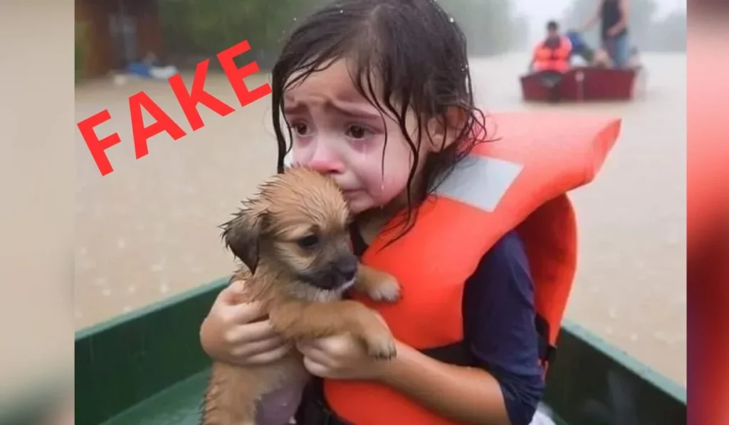 Imágenes falsas del huracán Helene: el caso de la niña con el cachorro