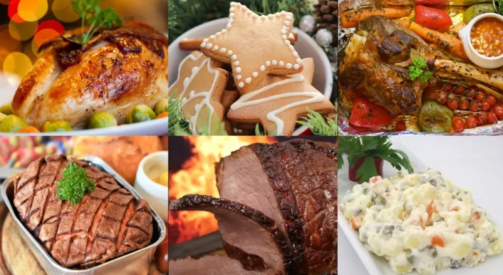 Núñez describe que los platos más demandados de esta celebración son el moro de gandules, cerdo al horno, pollo al horno, lasaña de res y la ensalada rusa. Aunque asegura que en la cena no pueden faltar los pastelitos, pasteles en hoja, la famosa telera y frutas como son manzanas y uvas.