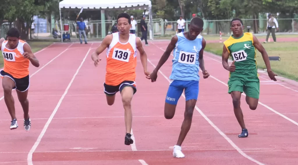 Ruth Vanessa García, de La Vega y Franquelo Pérez, de Jimaní, acapararon el primer lugar en los 100 metros planos de los Juegos Escolares.