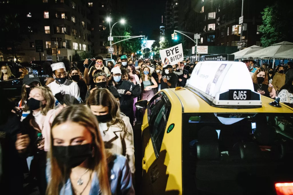En el céntrico Times Square, centenares de personas se concentraron para gritar y celebrar la victoria de Biden con la proyección de que ganará los 20 votos del Colegio Electoral del estado Pensilvania y por lo tanto superará los 270 votos electorales que necesitaba para confirmar su nuevo estatus de presidente electo.