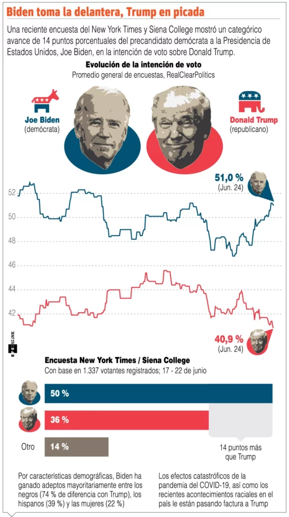 Biden enfrentará el próximo 3 de noviembre al republicano Trump, a quien le lleva una ventaja de 8,5 puntos en las encuestas de opinión nacional.