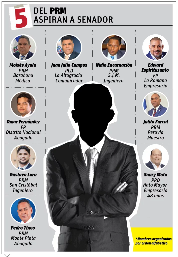 Política. La lista de diputados que buscan convertirse en senadores la completa Saury Mota del PRD candidato por Hato Mayor del Rey, un industrial probado que pretende emular y extender su desarrollo empresarial a toda la provincia.
